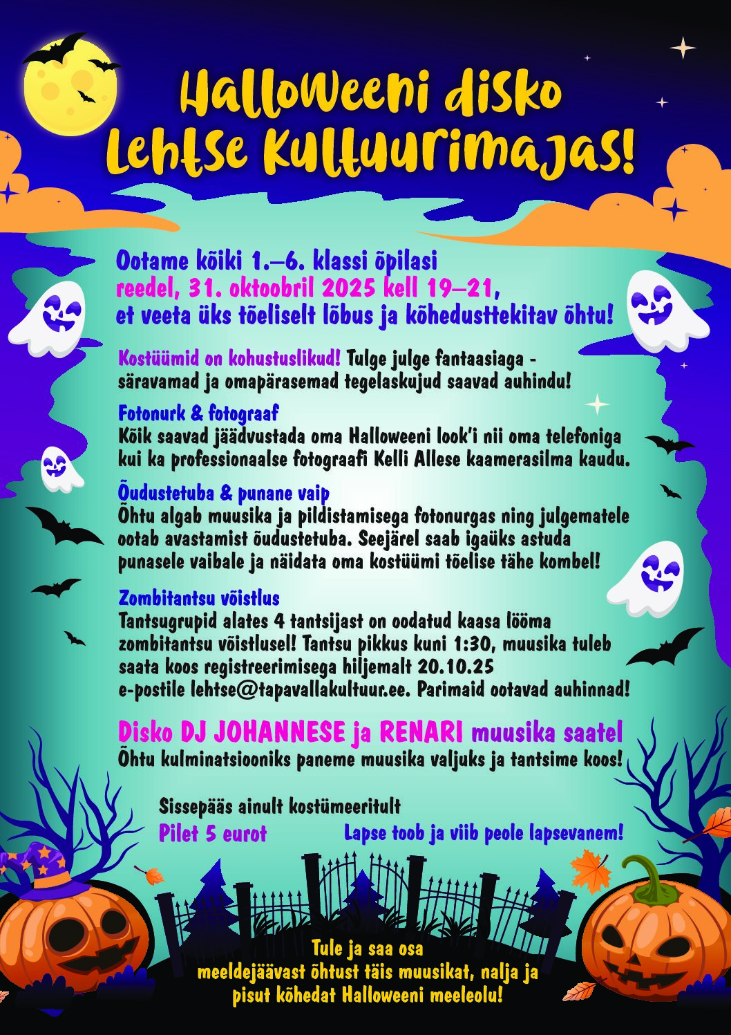 Reedel 31. oktoobril kell algusega kell 19.00. Oodatud on 1.–6. klassi õpilased.