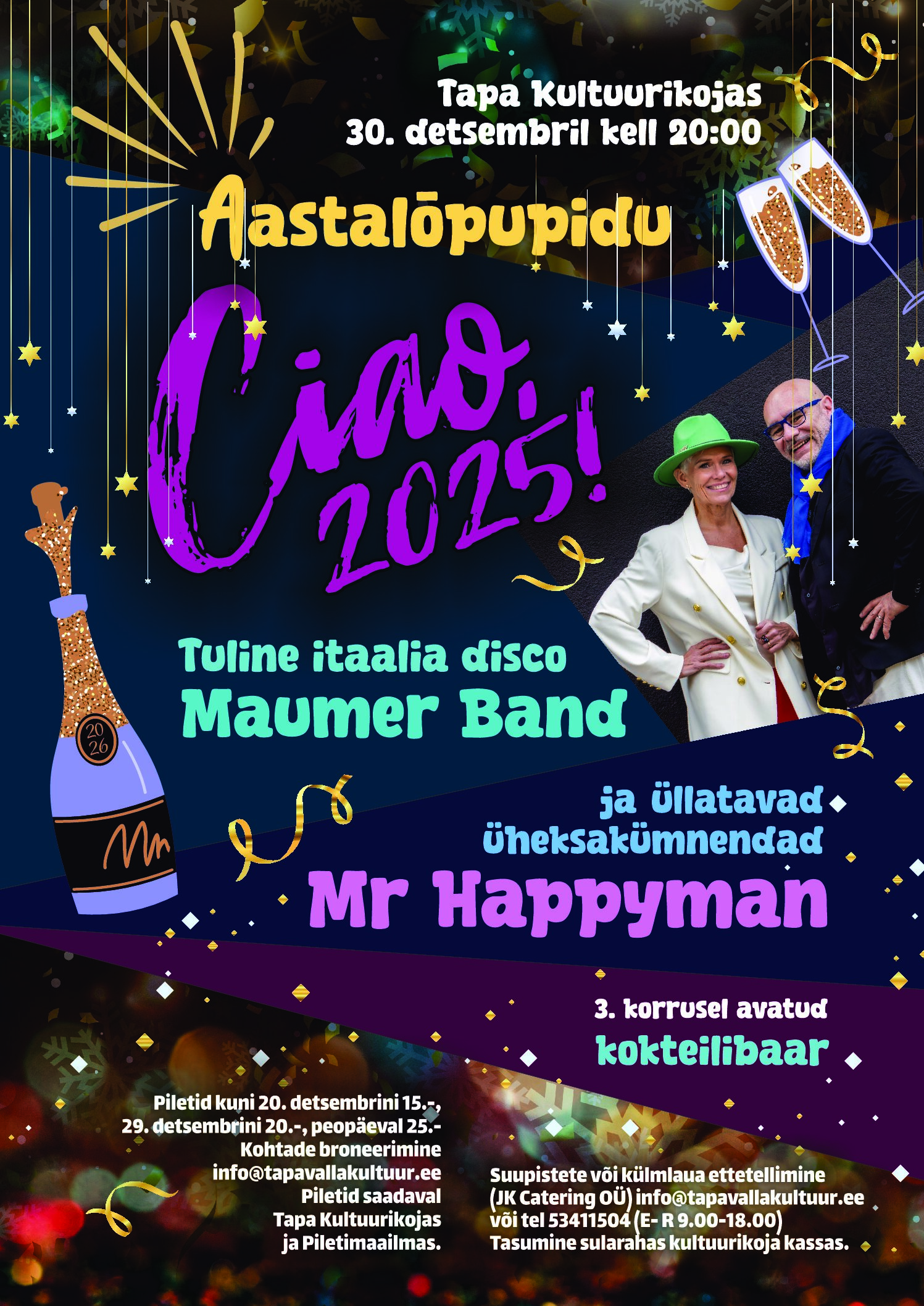30. detsembril ütleme üheskoos Ciao, 2025! OODATA ON: Tuline itaalia disco Maumer Band Üllatavad üheksakümnendad koos Mr Happymaniga 3. korrusel avatud kokteilibaar Piletid: kuni 20. detsembrini 15 eurot kuni 29. detsembrini 20 eurot peopäeval 25 eurot Suupistevaagna (5-le, 65 eur) või külmlaua (5-le, 55 eur) ettetellimine: info@tapavallakultuur.ee MENÜÜ: Suupistevaagen 5-lePankopurus paneeritud hiidkrevetisabad mango-tšilli kastmega;Wabriku lõhe-seviche […]