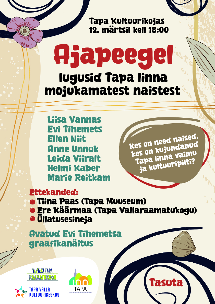 Märts toob endaga kaks olulist päeva – 8. märtsil tähistame naistepäeva ja 14. märtsil emakeelepäeva. Tapa 100. sünnipäeva aastal toome esile valiku naisi, kes on mõjutanud Tapa linna vaimu ja kultuuripilti. Fookuses: Liisa Vannas Evi Tihemets Ellen Niit Anne Unnuk Leida Viiralt Helmi Kaber Marie Reitkam Ettekanded: • Tiina Paas (Tapa Muuseum) • Ere Käärmaa […]