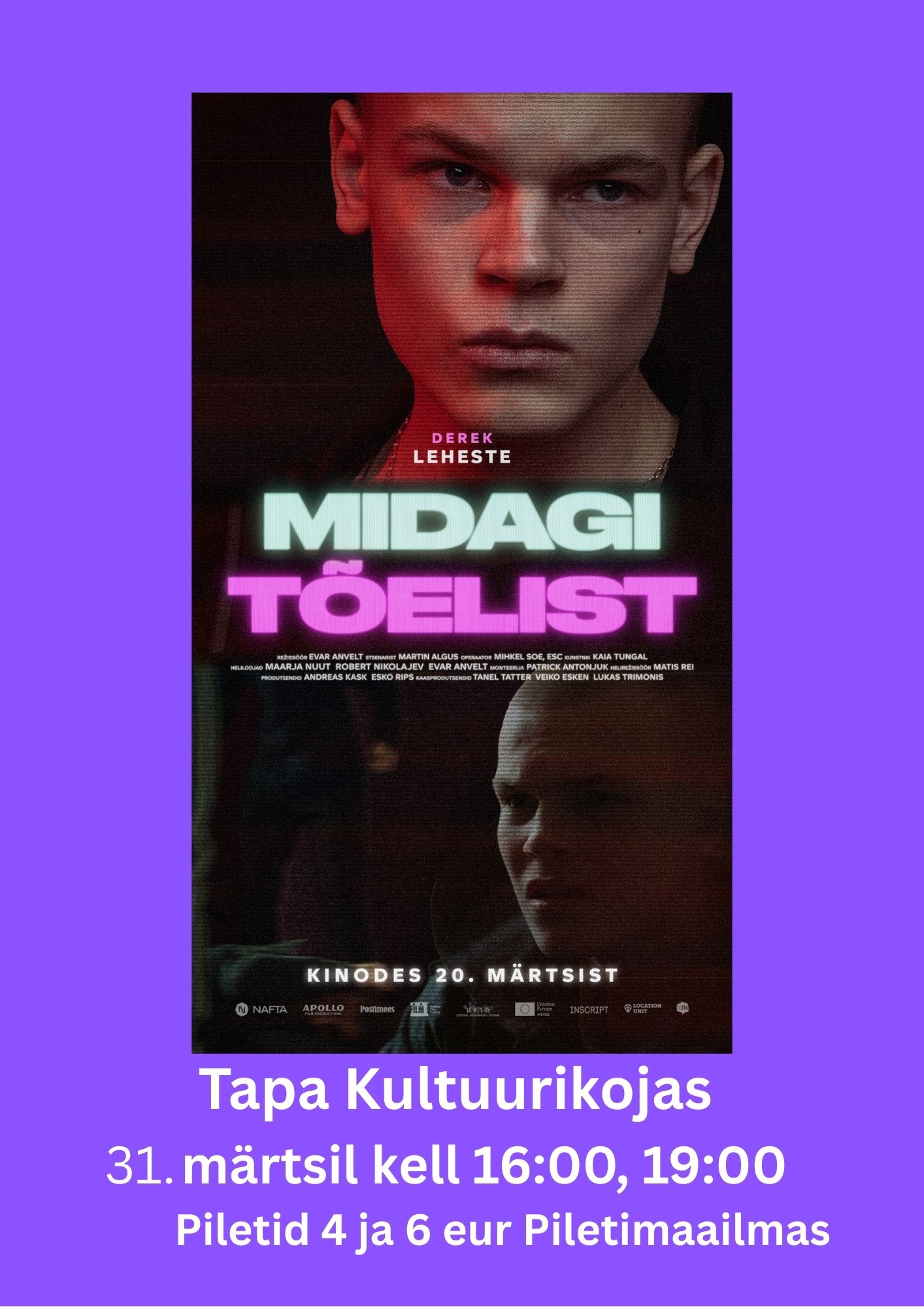 Režissöör Evar Anvelti debüütfilm „Midagi tõelist“, mille peaosades mängivad Jan Uuspõld, Kristo Viiding, Ester Kuntu, Derek Leheste ja paljud teised. Keskealine Leo elab koos naise Diana ja kahe lapsega äärelinna ridaelamus. Abikaasade vaheline armastus on hääbunud ning alles on vaid üksluine, harjumusest tingitud kooselu. Leod lohutab vaid lastega koosveedetud aeg, sest ta on loobunud nii […]
