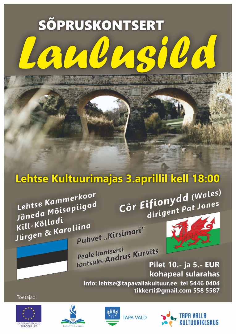 Esinevad: Lehtse Kammerkoor Jäneda Mõisapiigad Kill-Kõlladi Jürgen & Karoliina Cor Eifionydd ( Wales) Avatud on puhvet.
