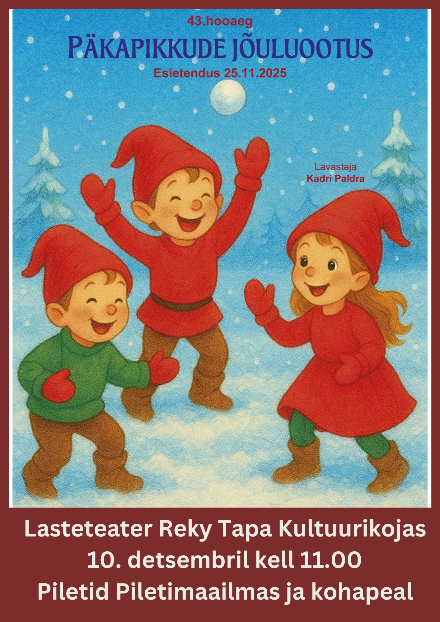 10. detsembril kell 11.00 Tapa Kultuurikojas Jõulumuinasjutt „Päkapikkude jõuluootus“ viib lapsed otse päkapikkude koju. Väikeste vaatajate ees rullub lahti armas jõuluhõnguline muinasjutt, mis täidab ka kõige pisemate südamed põneva ootusega. Päkapikke tahab ju näha igaüks. Aga kuidas päkapikud kõike märkavad ja milline on nende elu enne jõule? Seda kõike saadki teada, kui tuled vaatama meie […]
