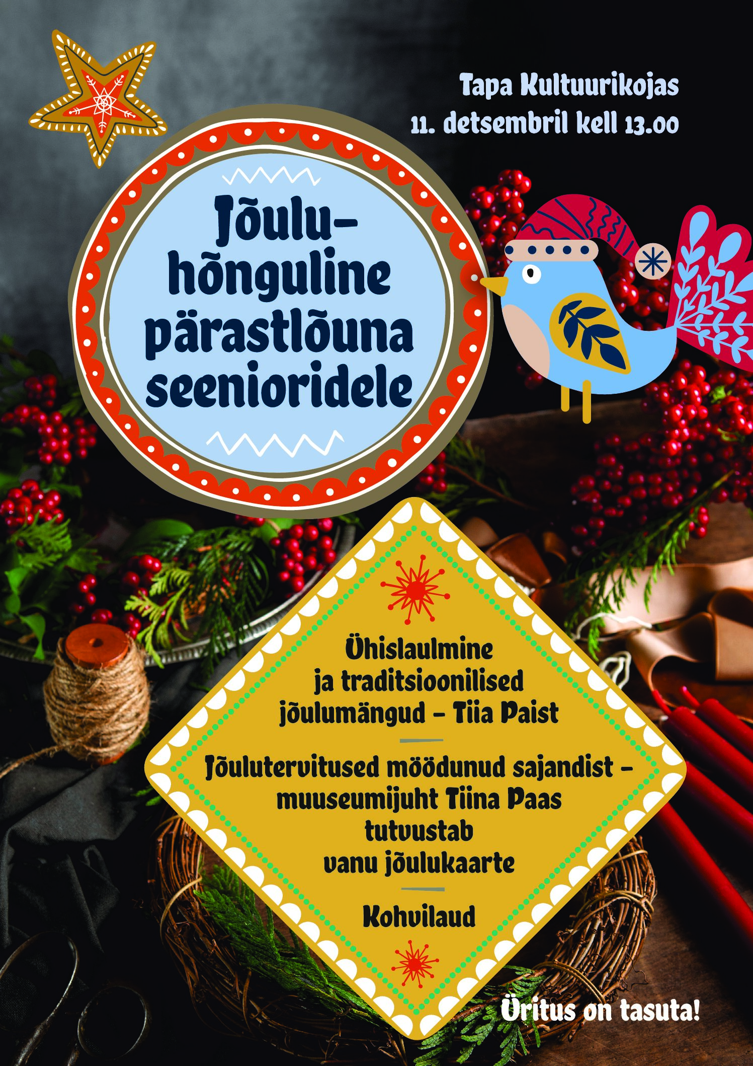 Seenioride jõululõuna toimub 11. detsembril algusega kell 13.00.